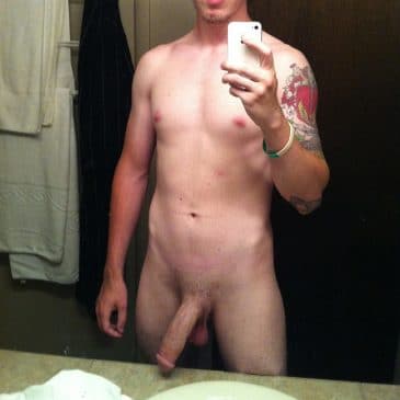 This young man got a huge tattoo on his shoulder and he poses naked to show off that cut massive dick